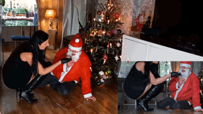 Da kniet doch tatsächlich der Weihnachtsmann vor meinem Christbaum , leckt an meinen neuen Lackstiefeln und wichst sich einen . Unfassbar. Und dann entdecke ich auch noch das er die ganzen Weihnachtskekse aufgefressen hat, obwohl er mir nicht mal ein Geschenk mitgebracht hat. Na da muss doch eine Strafe folgen . Er bekommt von mir einfach meine schon verdauten Weihnachtskekse zum nochmaligen genießen in Form von einem schönen Haufen Scheiße direkt aus meinem Arsch. Die herrlich noch warmen Weihnacht Plätzchen bekommt er dann Stück für Stück in sein blödes Maul gestopft , aber fressen kann er nicht wirklich und schmiert viel von der Scheiße in seinen langen weißen Bart.