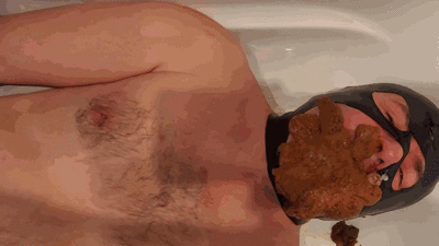 Der Scheißefresser Nr. 3 hat es sich in der Badewanne scheinbar gemütlich gemacht für ein Bad , aber mein Darm ist voll , die Toilette kaputt , da gibts natürlich kein entspanntes Vollbad mit Wasser, da bekommt der Scheißefresser Nr.3 eine große Ladungs Scheiße ins Gesicht. Einen Teil hat er schön gefressen, der andere Teil bedeckt fast das ganze Gesicht und damit kann er nun eigentlich direkt baden.